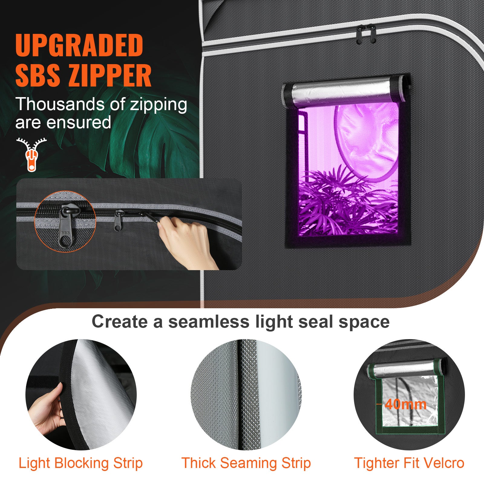 VEVOR 2x4 Grow Tent, 48'' X 24'' X 72'', High Reflective 2000D Mylar Hydroponic Growing Tent With Observation Window, Tool Bag And Floor Tray For Indoor Plants Growing