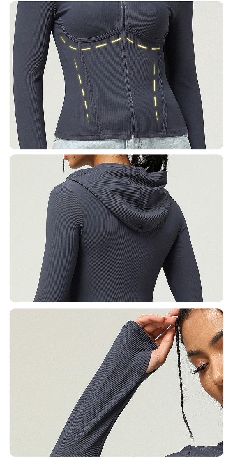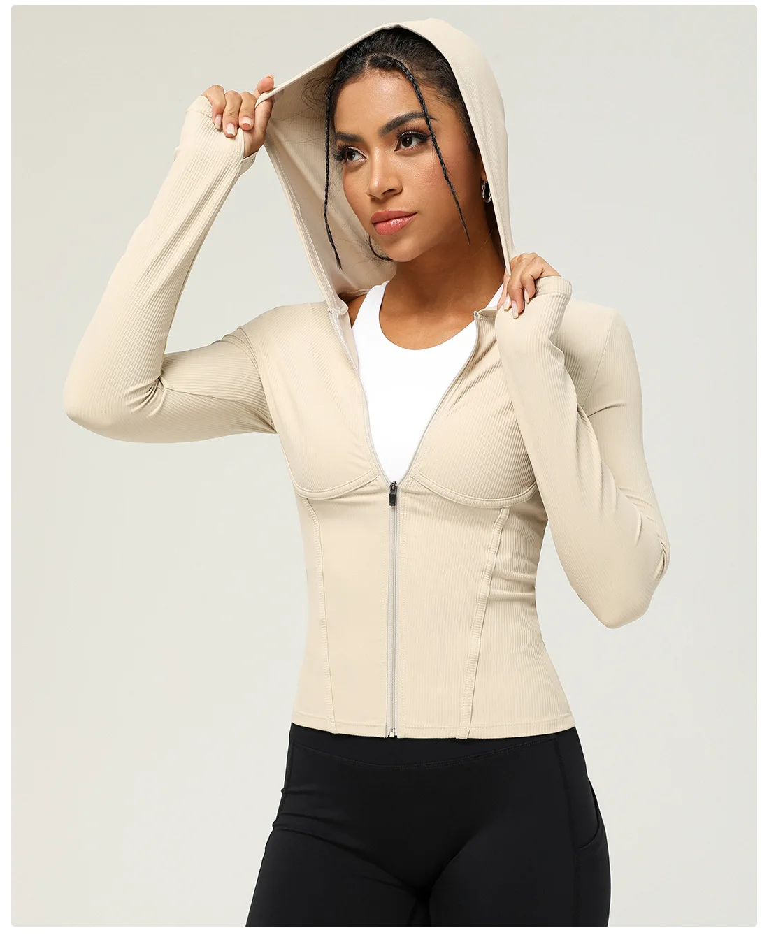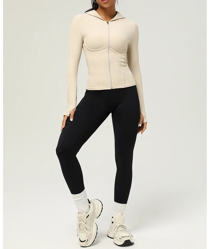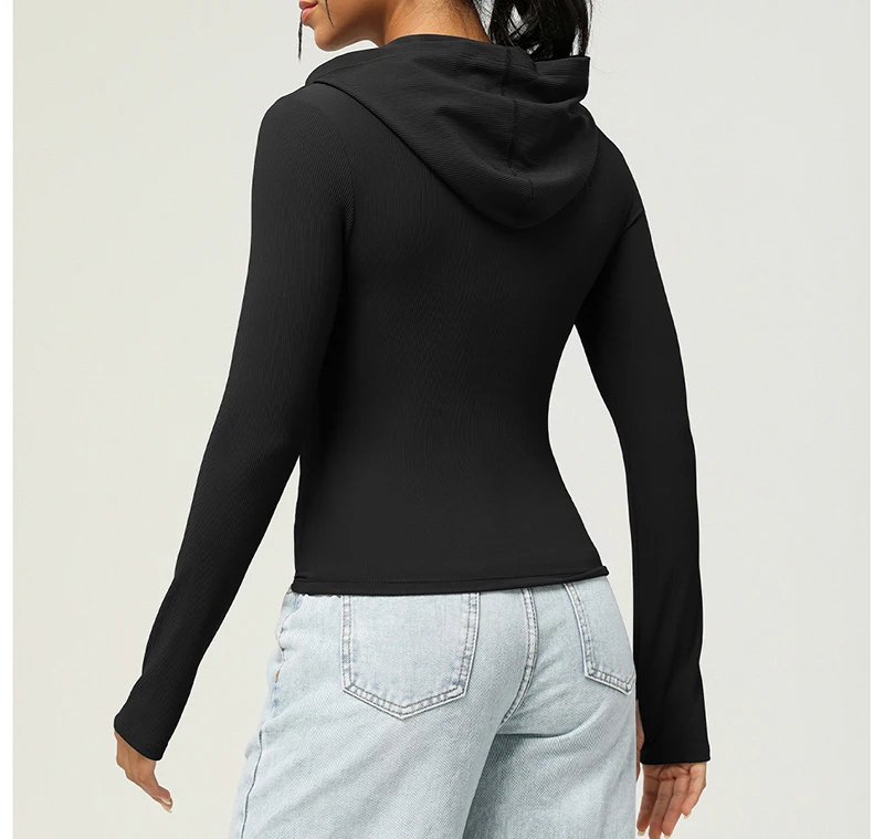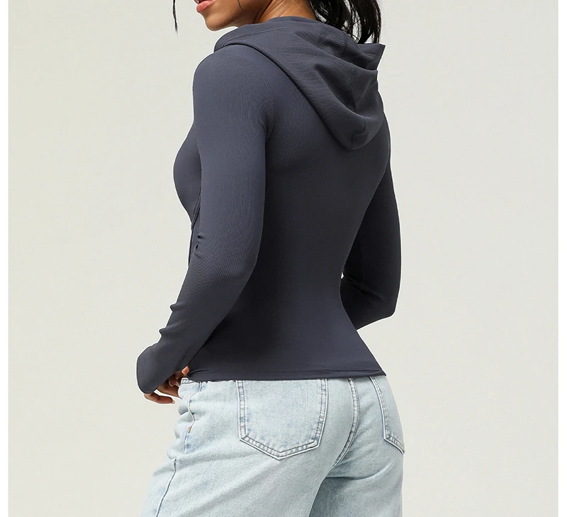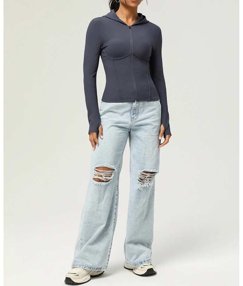 Full Zip Up Hoodie Women Long Sleeve Ribbed Sweatshirts Fall Outfits Oversized Casual Fashion Hood Jackets
