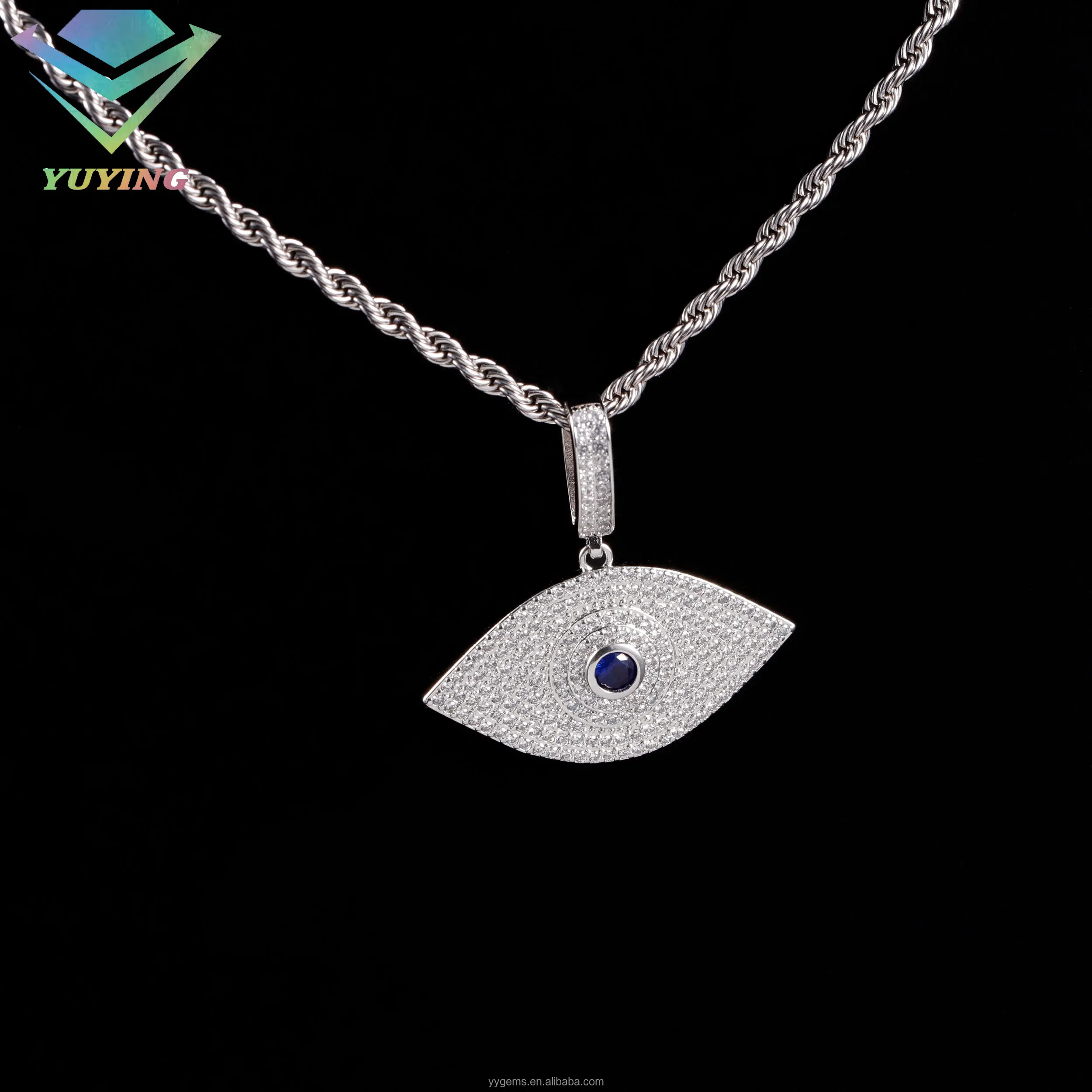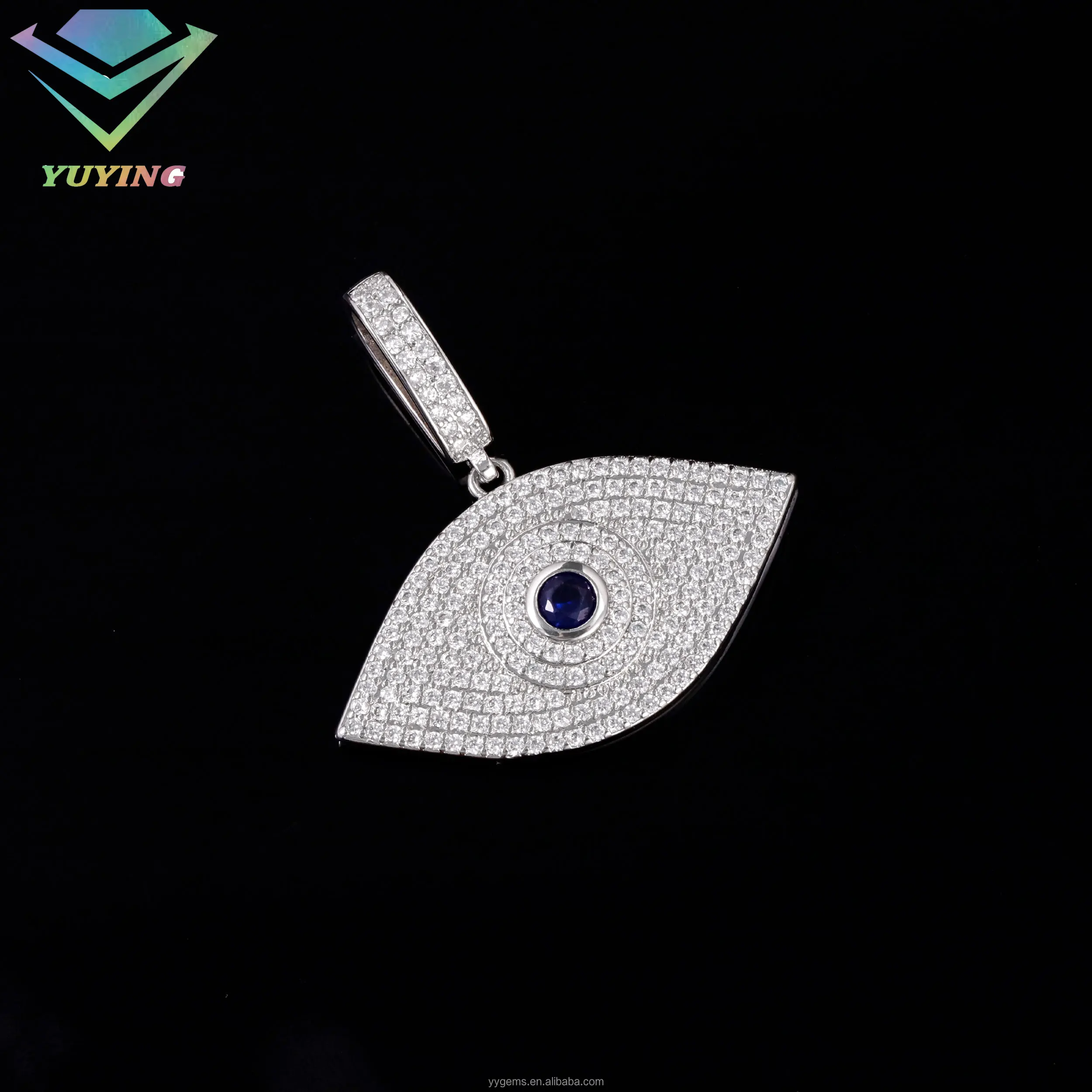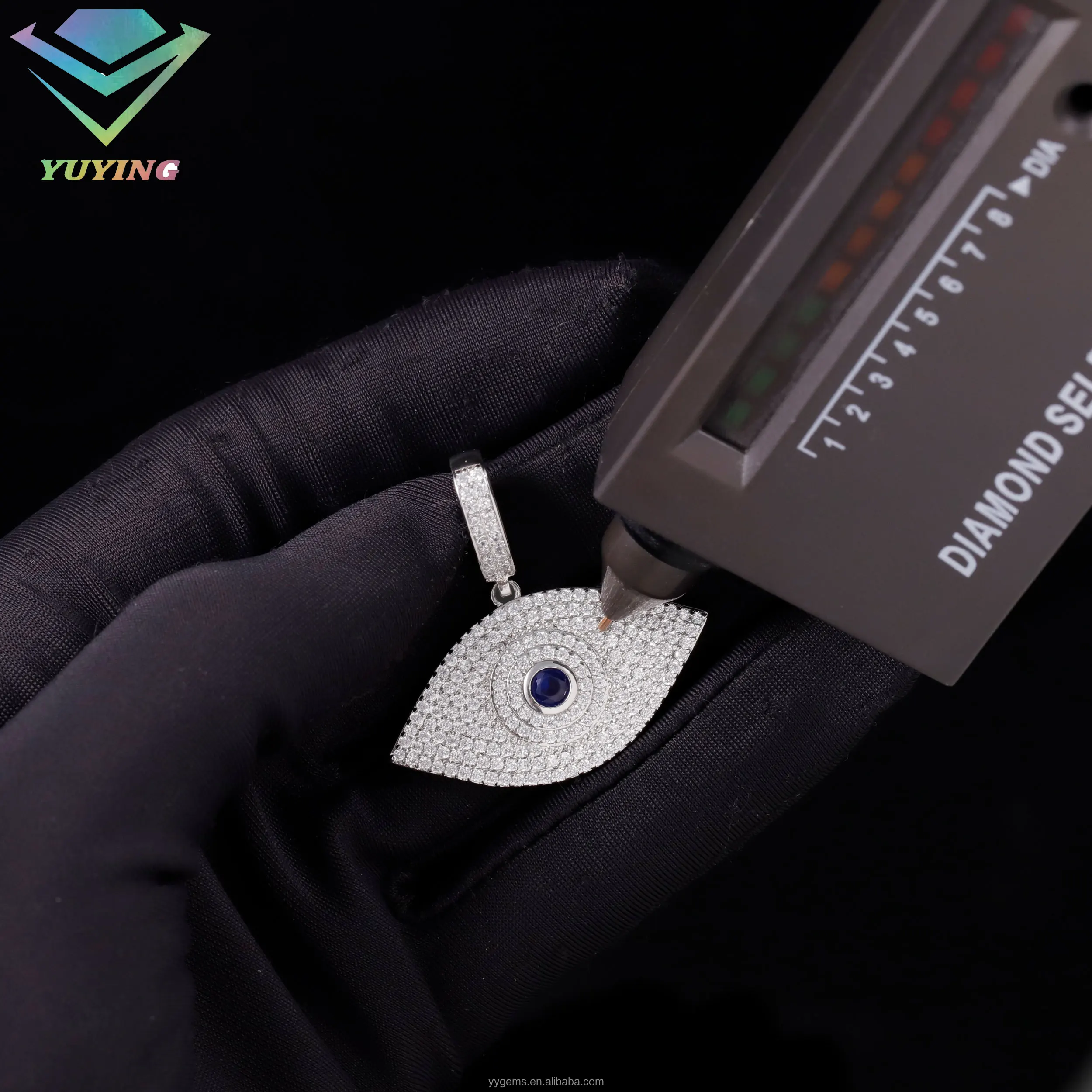 Yu ying made Charm iced out Evil eye Pendant 925 Silver With Moissanite Diamond custom fashion Hiphop fine jewelry for necklace